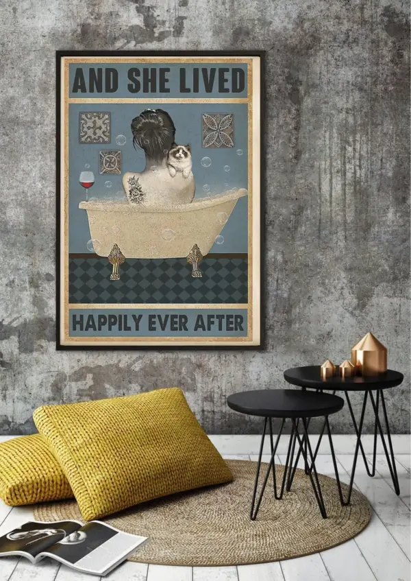 And She Lived Happily Ever After Cats Poster Love Cats Poster Cute Cat Poster Girl And Black Cat Poster Poster Wall Art Home Decor
