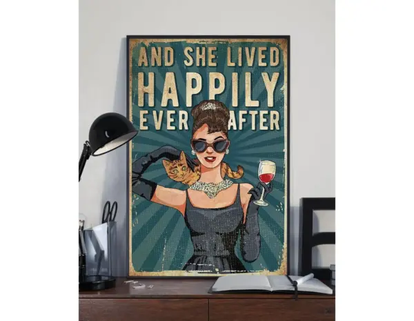 And She Lived Happily Ever After Cats Poster Wall Decor Cats Art Print Cats Wall Decor Funny Poster Cats Lover Wine Poster
