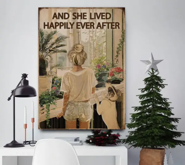 And She Lived Happily Ever After Dog Poster Dog Lover Canvas Print Gardening And Dog Vintage Poster Cute Dog Wall Art Garden Lover Gift