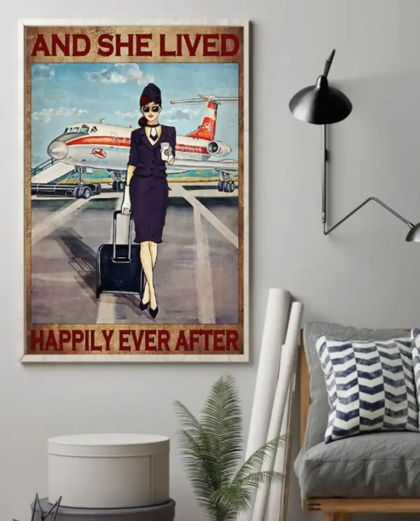 And She Lived Happily Ever After Flight Attendant Flight Attendant Poster Best Gifts Ever Signs For Home Wall Decoration 19