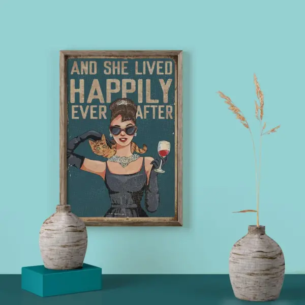 And She Lived Happily Ever After Poster Black Cat Print Cat Lover Gift Black Cat Poster Cat Mom Gift Cat Artwork Funny Cat Art