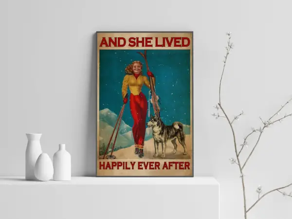 And She Lived Happily Ever After Poster Canvas Art Winter Sport Poster Skiing Poster Mobile Skiing Art Sport Poster Signs For Home