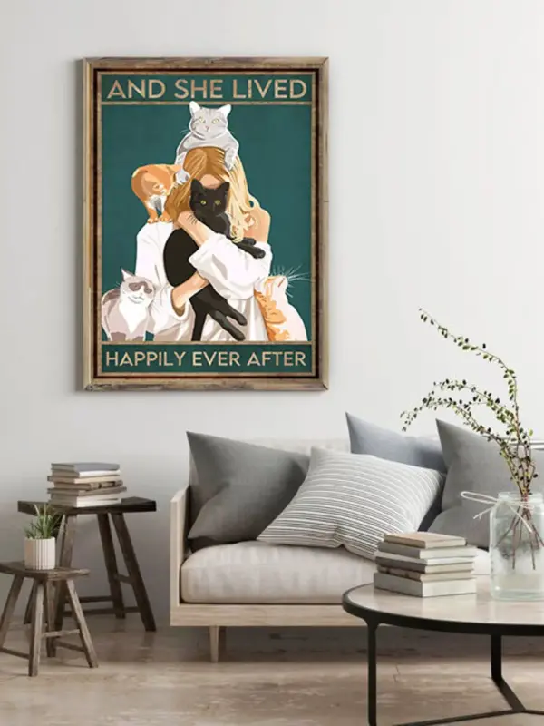 And She Lived Happily Ever After Poster Cat Poster Cat Lovers Gift Girl Loves Cat Print Cat Mom Gift Home Decor Sign For Home