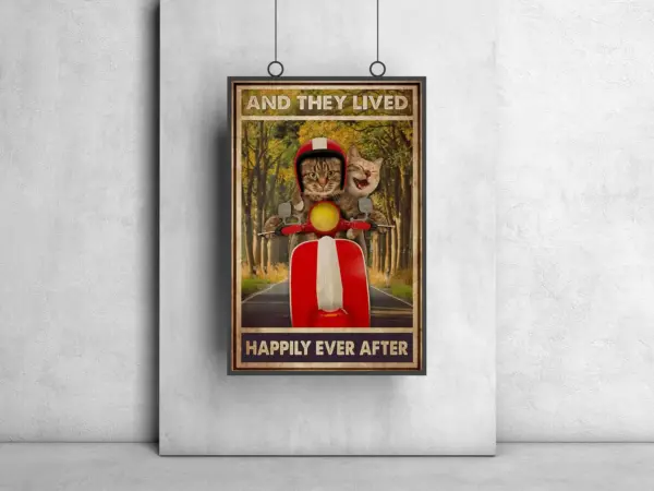 And She Lived Happily Ever After Poster Cat Riding Scooter Poster Cat Riding Poster Funny Cat Poster Best Gift Poster Birthday Gift