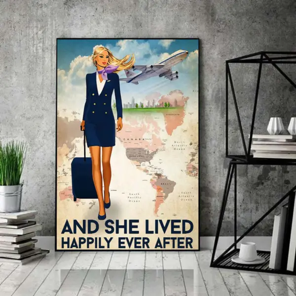 And She Lived Happily Ever After Poster Flight Attendant Poster Cabin Crew Print Airline Attendant Poster Air Stewardess Print Framed Matte Canvas