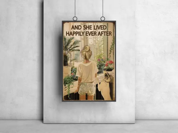 And She Lived Happily Ever After Poster Garden Dog Poster Blonde Girl Poster Best Gift Poster Birthday Gift