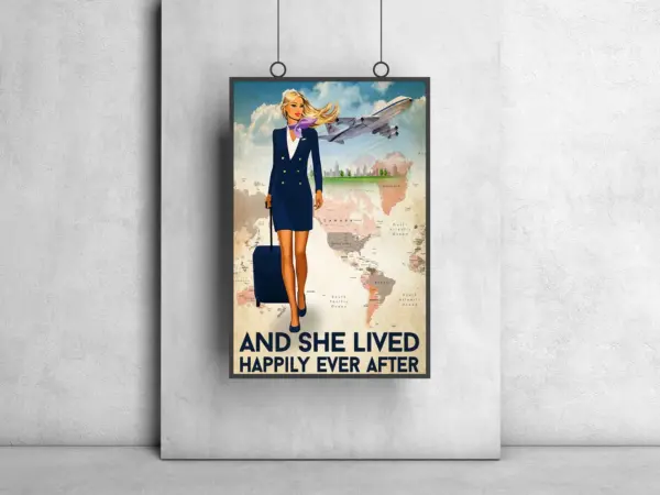 And She Lived Happily Ever After Poster Girl Flight Attendant Poster Air Hostess Poster Best Gift Poster Father S Day Gift