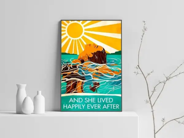 And She Lived Happily Ever After Poster Love Swimming Poster Love Wine Poster Girl Loves Swimming Poster Summer Poster