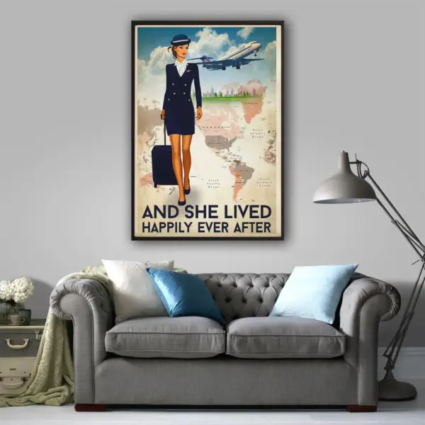 And She Lived Happily Ever After Poster Proud Flight Attendant Wall Airline Attendant Poster Air Stewardess Art Vintage Poster Magic Girl