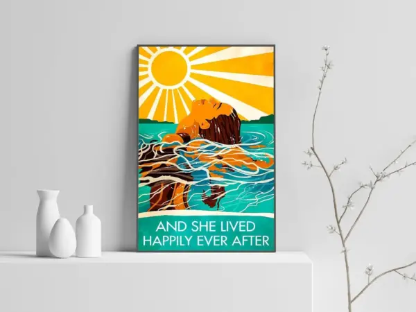 And She Lived Happily Ever After Poster Summer Art Diving Print Swimming Poster Girl And Beach Art Vintage Poster Signs For Home