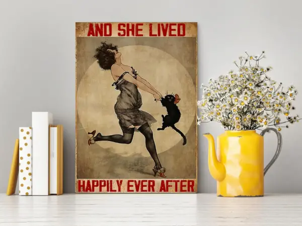 And She Lived Happily Ever After S Cat Vertical Poster And She Lived Happily Ever After S Cat Vertical Art Wall Cat Lover Poster