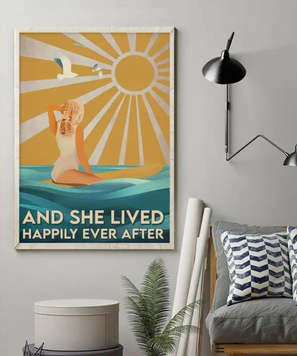 And She Lived Happily Ever After Surfing Poster Girl Surfing Canvas Print Love Surfing Poster Summer Surfing Poster Surfing Lover Gift