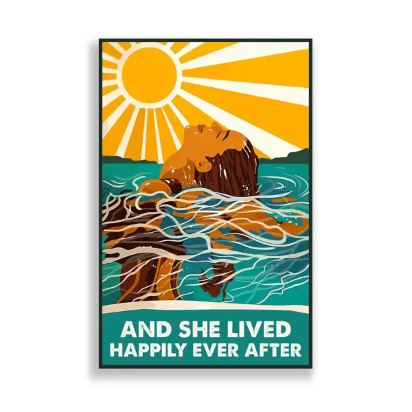And She Lived Happily Ever After Swimming Girl Poster Love Swimming Wall Art Summer Time Beach Vibes Ocean Lovers Home Decor