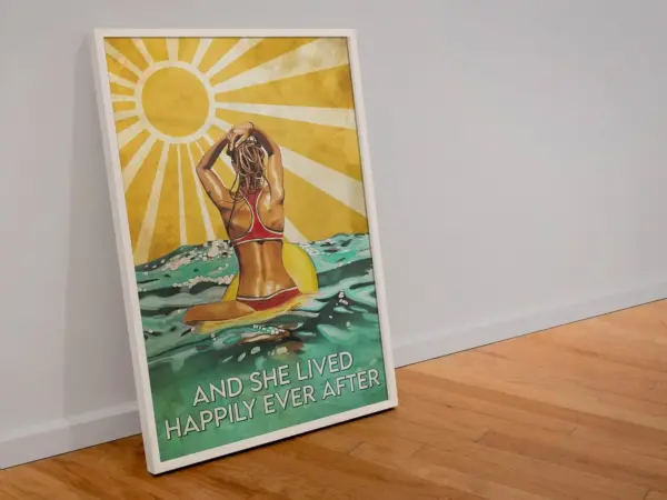 And She Lived Happily Ever After Wave Rider Motivational Poster Surfer Art Print Ocean Lover Canvas Art For Home Decor