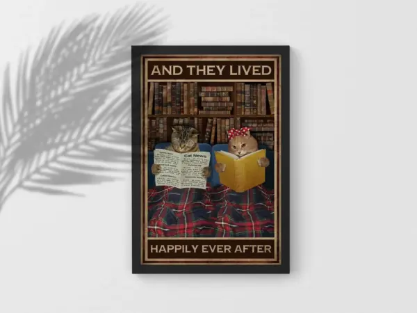 And They Lived Happily Ever After Poster Black Cat Art Cat Couple Print Cat Lover Gift Cat Artwork Couple Poster Signs For Home