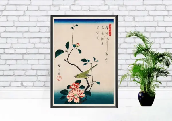 Ando Hiroshige Art Camellia And Nightingale Vintage Japanese Art Print Ukiyo E Art Gift Idea Wall Art Poster Print S