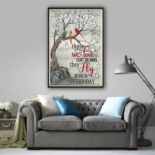 Heartwarming canvas print featuring a cardinal couple symbolizing eternal love, perfect memorial gift and elegant home decor piece for nature and bird enthusiasts.