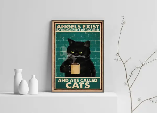Angels Exist Coffee Poster Cat Poster Print Wall Art Cat Lover Gift Wall Decoration Black Cat Poster Hanging Poster Best Gift