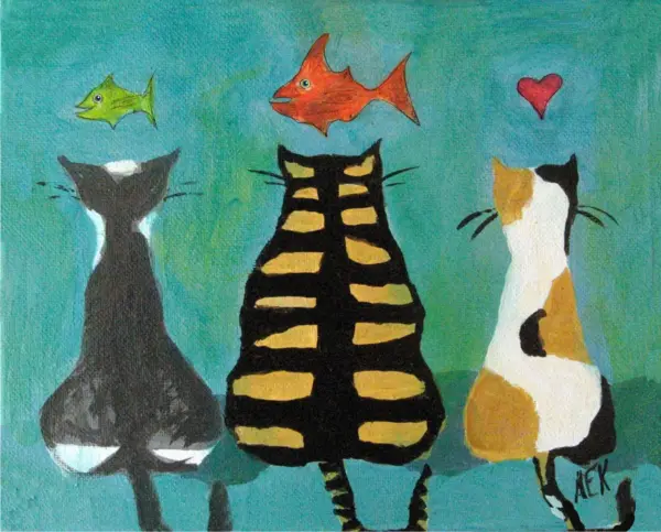 Animal Print Pet Portrait Cat Art Print Cat With Fish 8 Print Cat Print Gift For Cat Lover