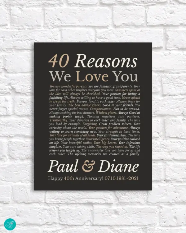 Anniversary Gift For Parents 40Th Wedding Anniversary Personalized Reasons We Love You 40 Years Married Mom And Dad Anniversary Sign Art