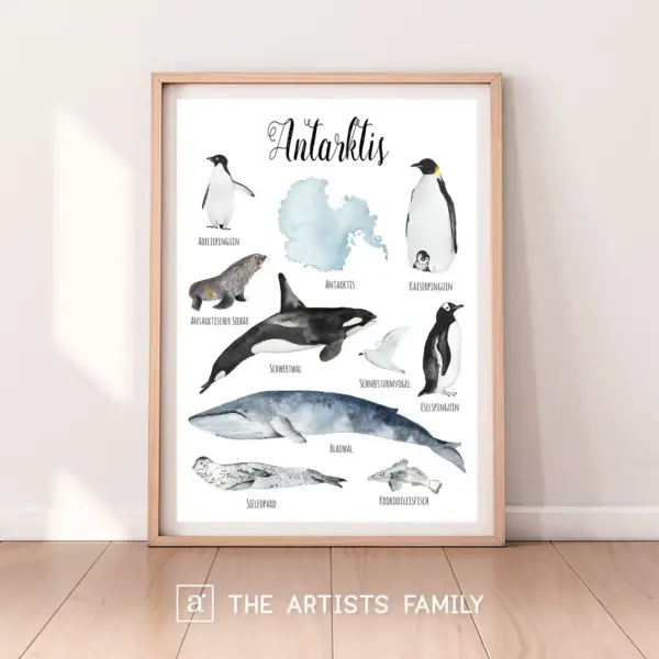 Antarktis Kontinentale Tiere Downloadable Prints Montessori Educational Kid Children Learning German Herunterladbar Deutscher Druck Aquarell