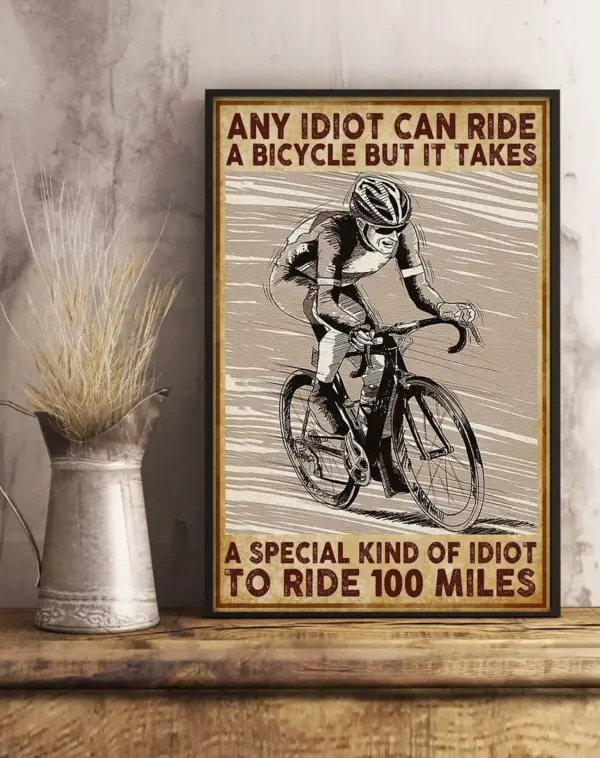 Any Idiot Can Ride A Bicycle But It Takes A Special Kind Of Idiot To Ride 100 Miles Cycling Lover Gift Bicyle Poster Home Decor Wall Art
