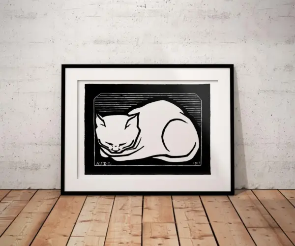 Art Nouveau Print Sleeping Cat Julie De Graag Remastered Art Print Cat Lover Gift Home Decor