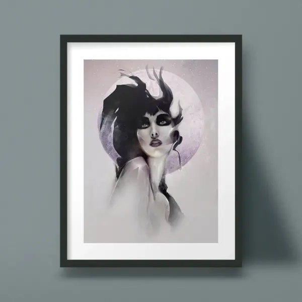 Art Print Female Portrait Wild Hair Fantasy Sky Woman Figure
