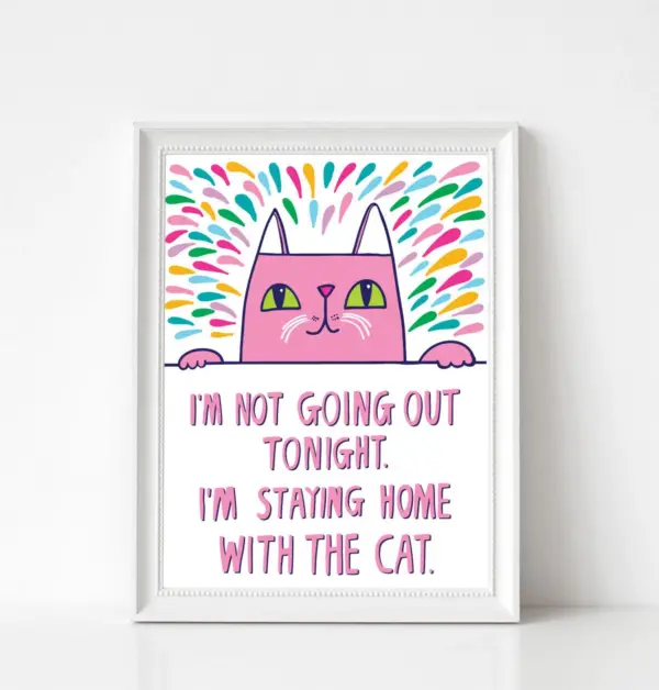 Art Print I M Not Going Out Tonight I M Staying Home With The Cat 300Mm X 400Mm Wall Decor Art Poster