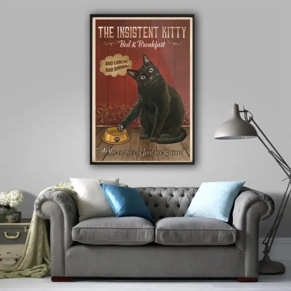 At The Corner Of Feed Me And Now Poster Bed And Breakfast And Lunch And Dinner Poster The Insistent Kitty Poster Funny Cat Poster