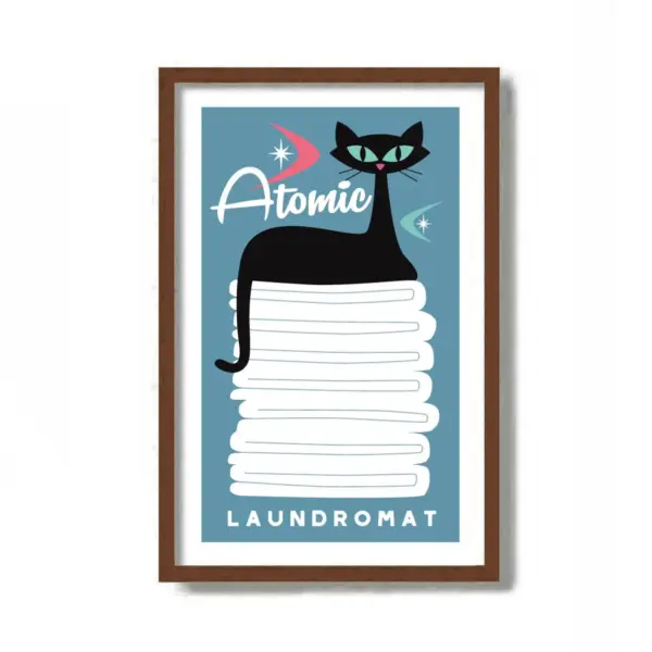 Atomic Cat Mid Century Modern Art Laundry Room Decor Cat Wall Art Black Cat Art Print Cat Lover Gift Idea Laundry Sign Bathroom Towels