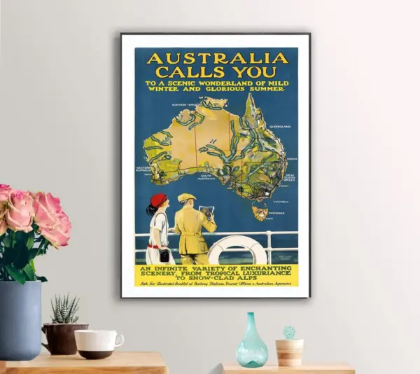 Australia Calls You Vintage Travel Poster Poster Paper Sticker Or Canvas Print Gift Idea