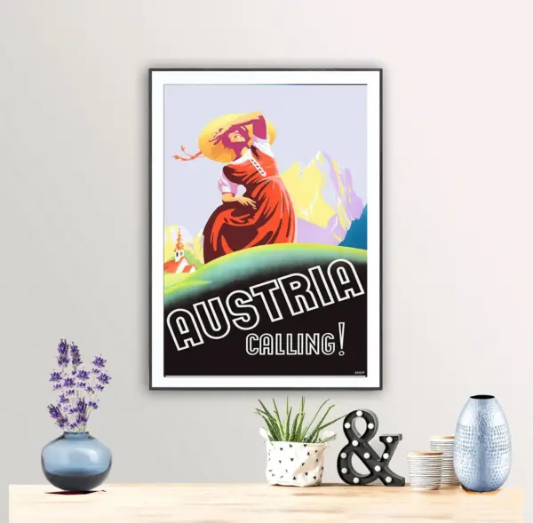 Austria Calling Vintage Travel Poster Poster Paper Sticker Or Canvas Print Gift Idea