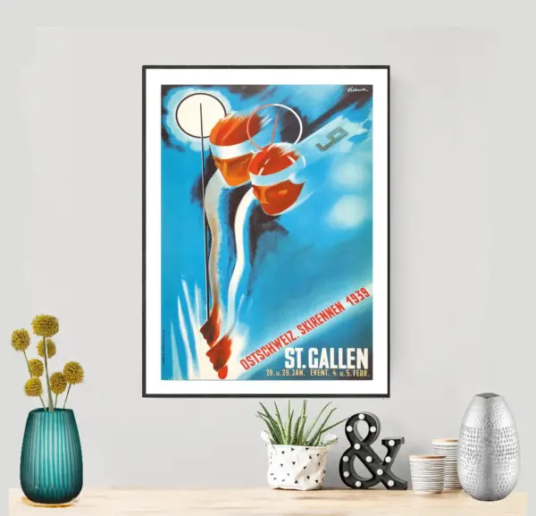 Austria Skirennen St Gallen 1939 Vintage Travel Poster Poster Paper Sticker Canvas Print Gift Idea