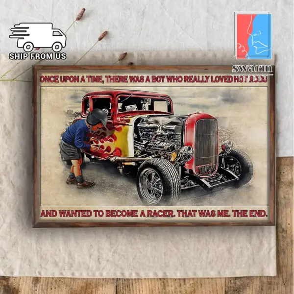 Auto Racing Racer Car Lovers Poster Once Upon A Time There Was A Boy Who Really Loved Hot Rods Living Decor Poster