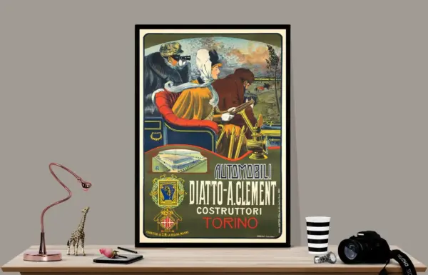 Automobili A Clement Torino Vintage Automobile Poster Poster Paper Sticker Or Canvas Print Gift Idea
