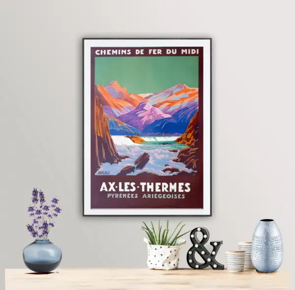 Ax Les Thermes Pyrenees Ariegeoises France Vintage Travel Poster Poster Paper Sticker Or Canvas Print Gift Idea