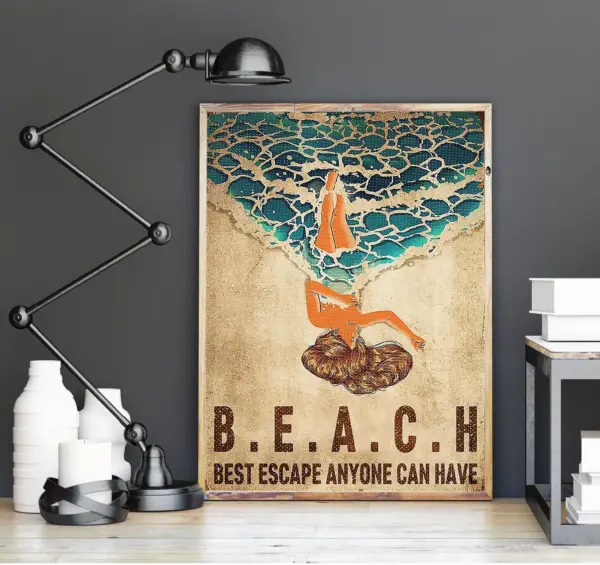 B E A C H Beach Swimming Vertical Poster Vintage Poster Beach Swimming Vertical Poster Into The Ocean Vertical Poster