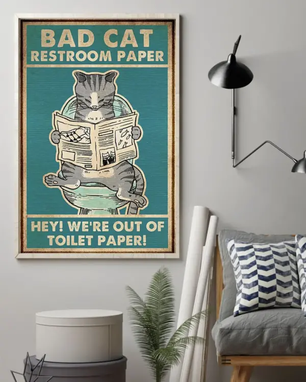 Bad Cat Restroom Paper Poster Wall Poster Retro Style Funny Kitty Poster