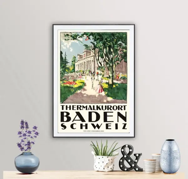 Baden Thermalkurort Schweiz Vintage Travel Poster Poster Paper Sticker Or Canvas Print Gift Idea