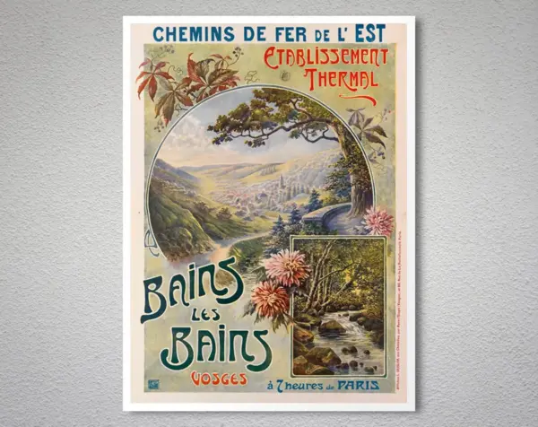 Bains Les Bains Vosges Vintage Travel Poster Poster Paper Sticker Or Canvas Print Gift Idea