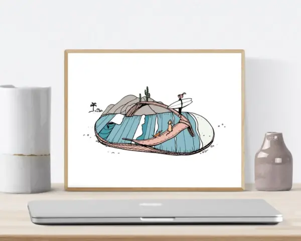 Baja Sole Flip Flop Art Print Cute Surrealist Coastal Home Decor Surfer Ocean Wall Art Signed Poster For Travel Lovers