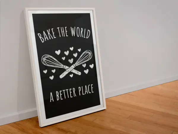 Bake The World A Better Place Baking Food Lover Punny Poster Funny Wall Art Canvas Art For Home Kitchen Decor