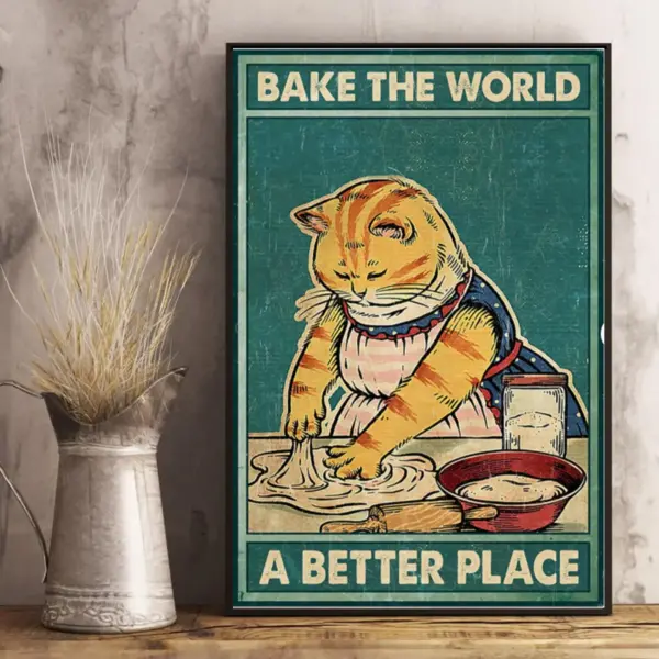Bake The World A Better Place Vertical Poster Cat Poster Cat Baker Poster Art Wall Decor