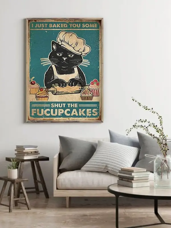 Baked You Shut The Fucup Cakes Black Cat Poster Vintage Kitty Poster Funny Kitty Bakery Poster Cat Poster Cat Lovers Gift Cat Portrait