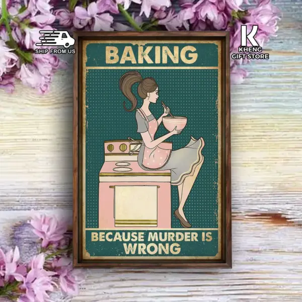 Baker Girl Baking Because Murder Is Wrong Poster Kitchen Wall Art Print Home Living Decor Poster