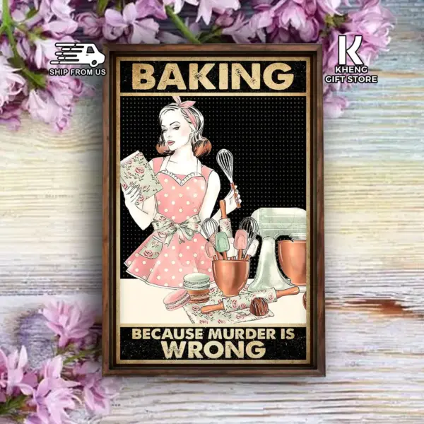 Baker Girl Baking Because Murder Is Wrong Poster Kitchen Wall Art Print Living Home Decor Poster