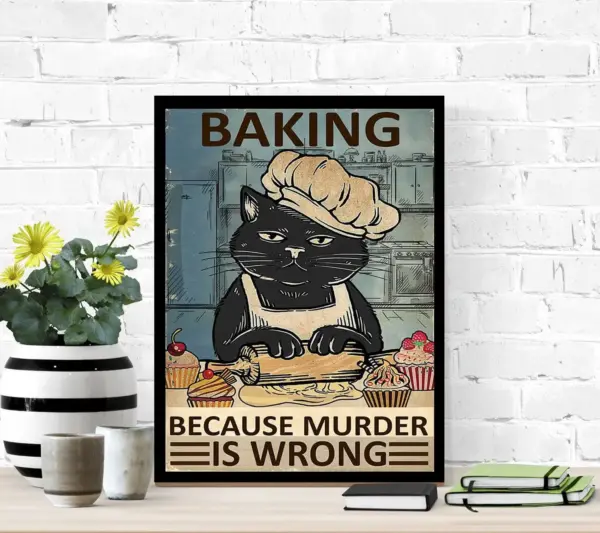 Baking Because Murder Wrong Black Cat Cooker Baker Love Cakes Poster