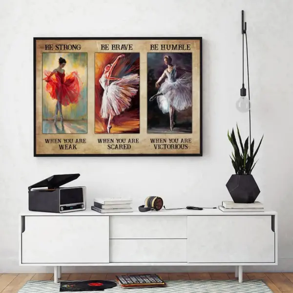 Elegant wall art featuring an inspiring ballet quote. Perfect for dance lovers, motivating home decor that celebrates strength and courage through ballet-themed design.