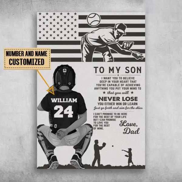 Baseball To My Son I Want You To Believe Deep In Your Heart Custom Name Canvas Poster Wall Art Print Birthday Housewarming Wedding Gift